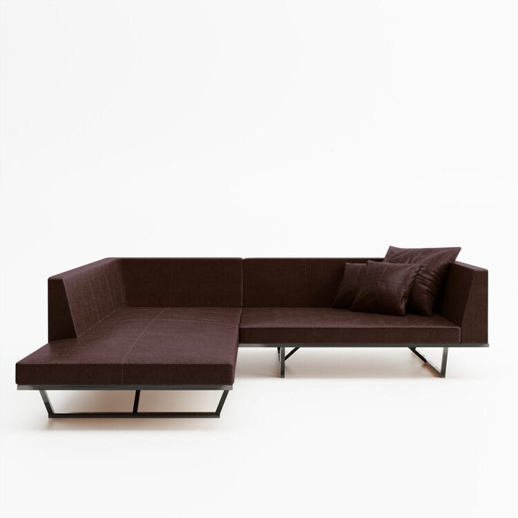 厚さ100mmのフラットな座面に、細身の無垢鉄フレームを組み合わせ、軽やかで洗練された印象に。