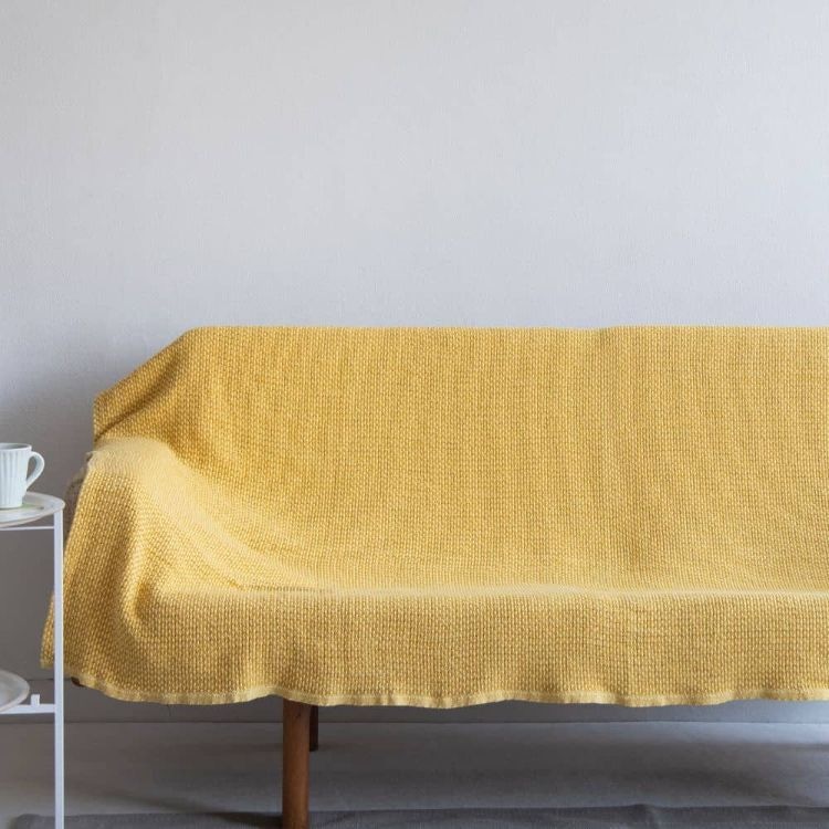 ゆったり織り上げたソフトなコットンスローはソファとの相性抜群!