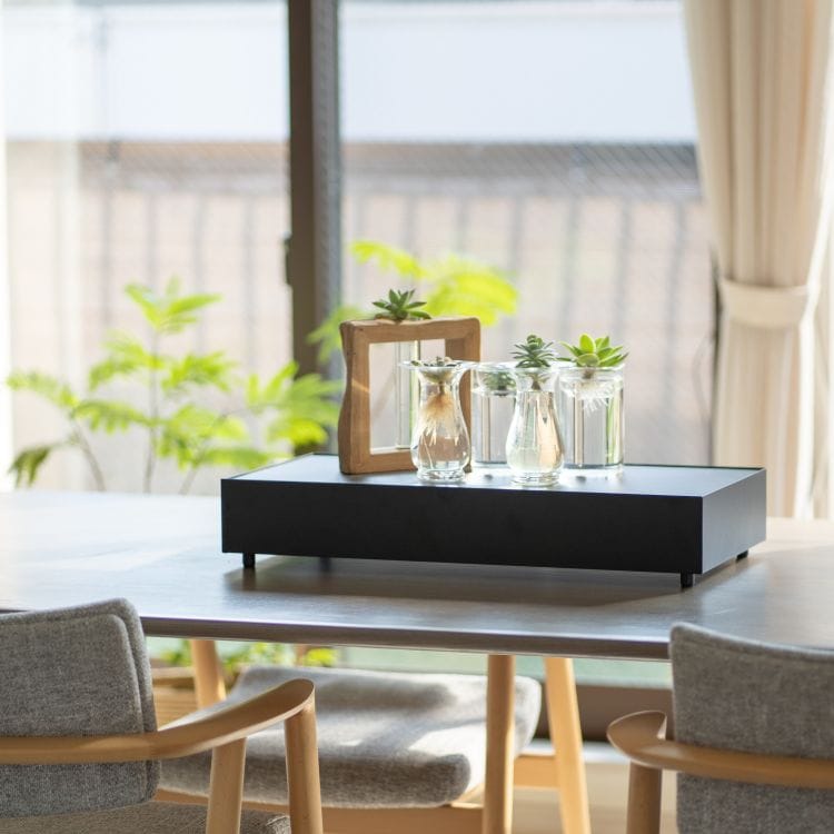 天面にはお気に入りのインテリアをディスプレイ、日常の細々した物は引き出しへ隠して収納。