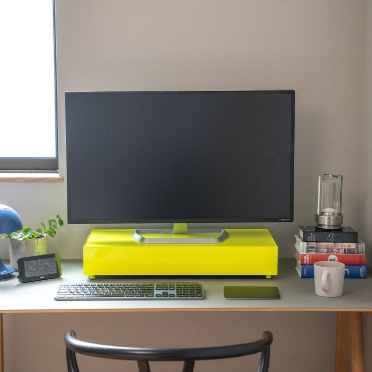 天面にはPCモニター、作業が終わったらキーボードやツールは引き出しへ。